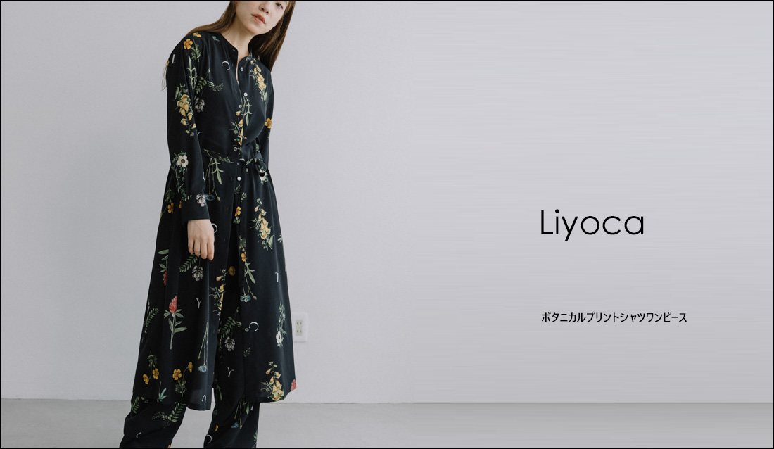 Liyoca リヨカ ボタニカルプリント バンドカラーワンピース レディース