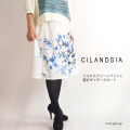 CILANDSIA(チランドシア) ひざ下ギャザースカート シルクスクリーンプリント ホワイト系